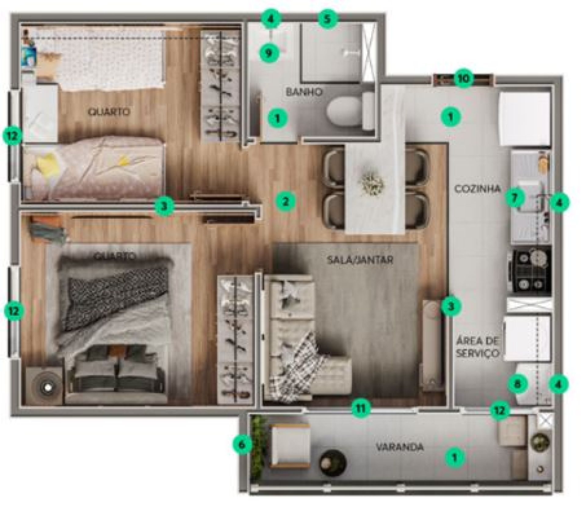 2 Quartos 2 Banheiros 1 Vaga